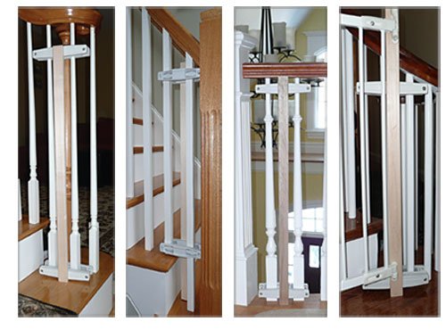 Baluster Mounting Kit gives you the ability to mount a child safety gate between two wood or metal balusters. It's an ideal solution if you are installing a baby gate when you can't attach your safety gate to a newel post. Each kit comes with mounting wood and a hardware set to mount one side of the gate. Not for use with pressure gates. Works with balusters spaced 6 1/2" wide measuring from the outside edges of one baluster to the other.